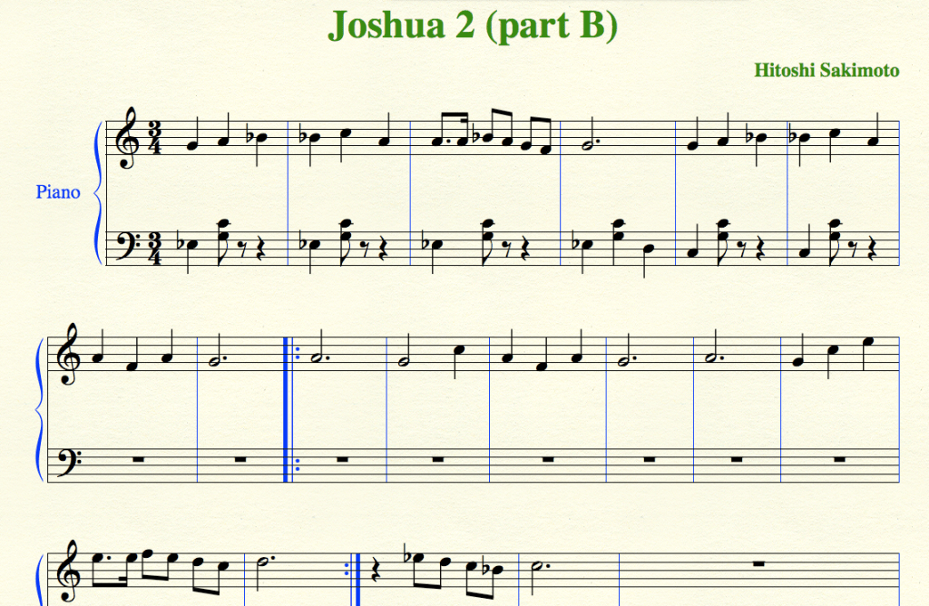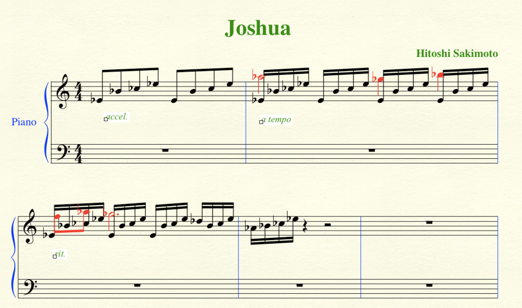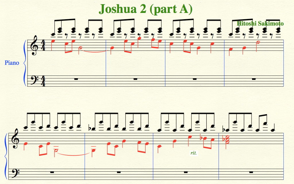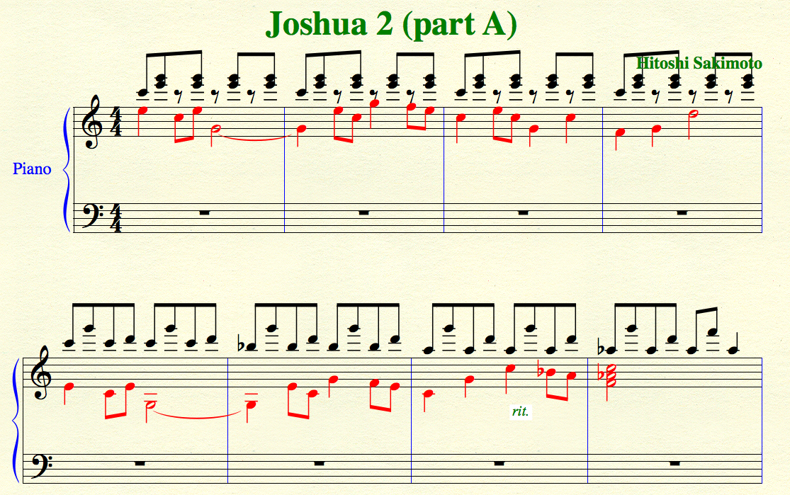 Apparently Sunday was the 22nd anniversary of Vagrant Story’s release in North America, and I remembered just how long I’ve wanted to cover that game’s music. I still have files backed up on my computer from 2009, when I first tried my hand at transcribing. (I had taken piano lessons for many years at that point, but they didn’t teach me any transcription or arrangement skills.) I thought it would be fun to share a small glimpse of my feeble early attempts, so here are images of the transcriptions of “Joshua” and “Joshua 2” that I quickly abandoned.